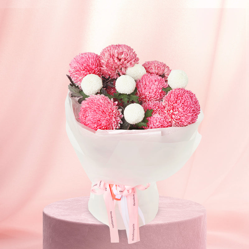 Love Story terinspirasi dari momen jatuh cinta untuk pertama kalinya—saat hati masih belajar berani, masih malu untuk mengungkapkan, namun penuh ketulusan. Rangkaian peony mum berwarna pink melambangkan kelembutan, kepolosan, dan kasih sayang yang lahir dari perasaan yang murni.